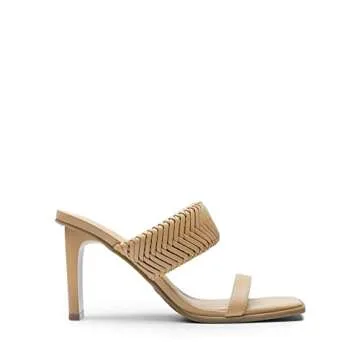DREAM PAIRS Women's Nude Square Toe Heels for Women Braided Open Toe Two Strap Slip on Heels Chunky Mules Sandals Party Wedding Dress Dating Pumps Shoes Size 10 SDHS2310W-NEW