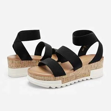 Show moreIntroducing the DREAM PAIRS Women's Open Toe Ankle Strap Casual Flatform Platform Wedges Sandals – the ultimate blend of comfort and style! These remarkable sandals, featuring a chic 2.36-inch wedge heel and a 1-inch platform, are designed to provide a subtle lift while enhancing your overall posture. The modern elastic strap design ensures a snug and flexible fit, allowing for effortless wear throughout your summer escapades. Perfectly crafted for those who value both functionality and fashion, these sandals bring a touch of elegance to any outfit.