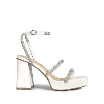 DREAM PAIRS Women's Platform Strappy Heels Open Toe Ankle Strap Square Party Sandals Y2K Dress Shoes,Size 8,White-Rhinestone,SDHS2346W