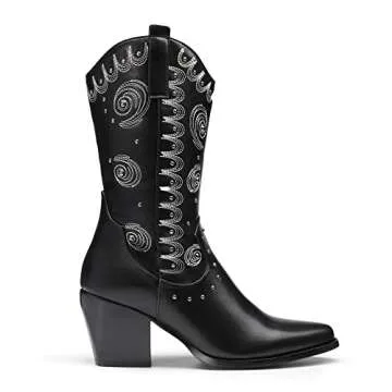 DREAM PAIRS Women's SDMB2207W Western Cowboy Boots Mid Calf Cowgirl Boot Pull-on,Black,Size 9