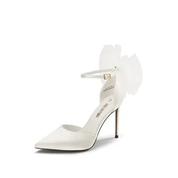 DREAM PAIRS Women's Elegant Stiletto Pumps with Adjustable Bows - Size 8.5 White