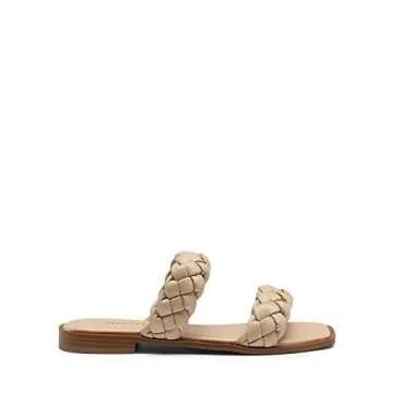 DREAM PAIRS Women's SDSS2319W Braided Sandals Slip on Slides Two Straps Square Toe Dressy for Summer Nude Size 6.5
