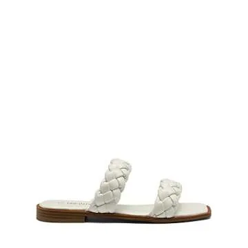 DREAM PAIRS Women's SDSS2319W Braided Sandals Slip on Slides Two Straps Square Toe Dressy for Summer White Size 9