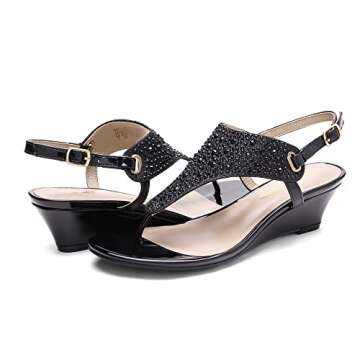 Show moreStep into summer elegance with the DREAM PAIRS Women's Wedge Thong Sandals. Designed in the USA, these stunning sandals showcase a stylish classic style vamp adorned with sparkling rhinestones that catch the light beautifully, making them perfect for any special occasion such as weddings or garden parties. With a comfortable 2" heel height, these wedges provide just the right amount of lift, ensuring you remain both fashionable and comfortable while enjoying warm weather outings.