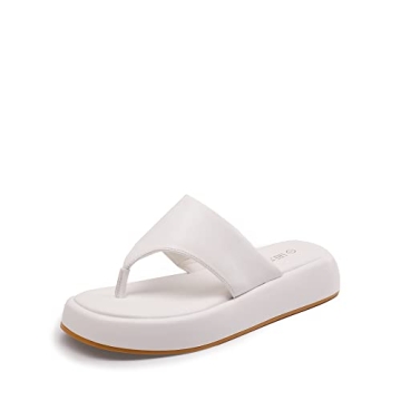 Show more Introducing the DREAM PAIRS Women Thong Platform Sandals—the perfect blend of style and comfort for the modern woman. Crafted with a luxurious 5mm soft PU-covered latex insole, these sandals deliver unparalleled cushioning, making every step feel like walking on clouds. With a carefully designed soft and breathable fabric lining, alongside a foam-lined strap, your feet will remain comfy and cool, even on the hottest summer days. This thoughtful construction ensures that you can wear them for hours without any discomfort, making them an essential addition to your summer wardrobe.