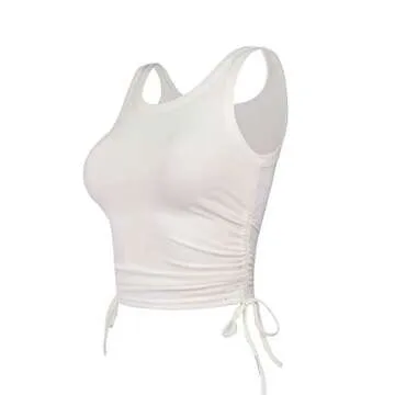 DREAM SLIM-Women's Round Neck Ribbed Crop Top-Casual Yoga Running Shirts Gym Workout Basic Tank Tops Sleeveless Vest(White, Small)