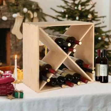 Show moreIntroducing the **Dreamall 24 Bottle Wine Rack**, a beautifully crafted solution for wine enthusiasts looking to enhance their home decor while keeping their favorite bottles organized and accessible. Constructed from premium fir wood, this rustic retro cube wooden wine rack not only boasts an attractive natural finish but also features a unique X-shaped internal structure that provides exceptional sturdiness and stability. Designed to hold up to 24 bottles, this versatile wine rack is perfect for both residential and commercial use, ensuring your collection is not just stored, but displayed elegantly.