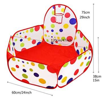 Constructed from soft waterproof polyester fabrics and a high-strength memory steel holder, this ball pit is not only durable but also easy to clean. It can accommodate two children, ideal for ages 1 to 5 years. To take the fun to a new level, the included basketball hoop adds an exciting challenge for little athletes! It’s suggested to fill it with 200-300 colorful play balls for the ultimate experience (balls not included). The ball pit is also designed with safety in mind—be cautious while setting it up and always keep it away from fire.