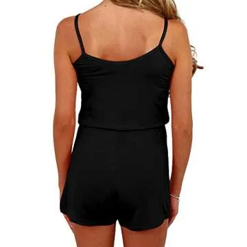 The design features classic spaghetti straps and a flattering V-neck that enhances your silhouette while allowing for easy movement. With a low back design and an adjustable waist drawstring, you can customize the fit to your preference, making this romper perfect for any body type.