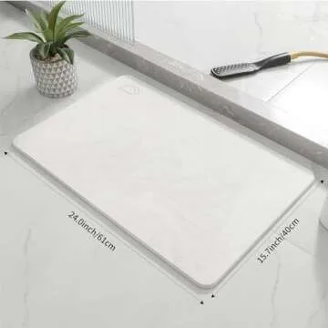 DREAVIO Stone Bath Mat - Quick Dry Diatomaceous Earth Bath Mat, Super Absorbent Diatomite Stone Bath Mats for Bathroom Floor, Kitchen Counter, Tub, Stone Shower Mat (23.5"x15",Marble White)