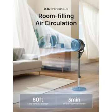 Show more Introducing the ultimate cooling solution for your home, the Dreo Fan for Bedroom! This 80° oscillating standing fan is not just any ordinary fan; it’s engineered with advanced airflow technology that circulates air up to 80 feet away, ensuring every corner of your room feels refreshing in under 3 minutes. Designed for optimal comfort, it features a sleek and modern design that complements any décor while providing powerful air circulation.