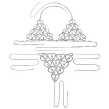 Dresbe Rhinestones Body Chain Suit Silver Crystal Bikini Bra Underwear Sexy Sparkly Party Body Jewelry Accessories for Women