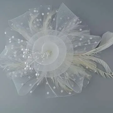 DRESHOW Fascinators Hat Flower Mesh Ribbons Feathers on a Headband and a Clip Tea Party Headwear for Girls and Women