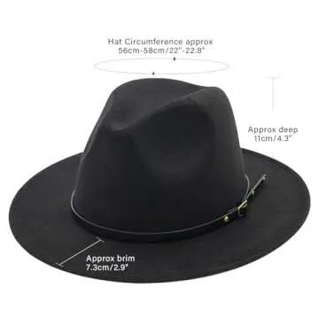 DRESHOW Women Belt Buckle Fedora Hat Boho Hat Classic Wide Brim Felt Panama Hat