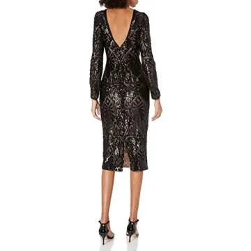Dress the Population Women's Emery Long Sleeve Stretch Sequin Midi Sheath