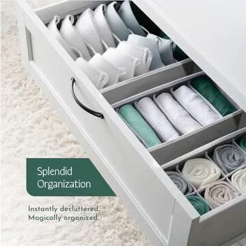 Dresser Organizer, [4 Pk] Grey Fabric Dresser Drawer Organizers (4 Sizes With 45 Slots) Foldable Underwear Drawer Organizer Breathable Bins for Bra, Lingerie, Socks, Scarves, Belt, Tie, Baby Clothes.