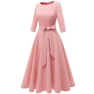 Show moreIntroducing the DRESSTELLS Vintage Cocktail Dress for Women, a stunning blend of elegance and modern style, ideal for any special occasion. This chic fit-and-flare swing dress showcases a sophisticated tea length that flatters every figure, making it the perfect choice for wedding guests or formal parties in Spring 2025. The blush color adds a touch of romance, while the three-quarter sleeves offer a modest yet stylish appeal. With its decorative belt that cinches the waist, this dress provides a flattering silhouette that accentuates your natural curves without feeling restrictive.
