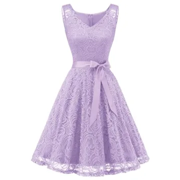 Show moreIntroducing the Dressystar 0010 Women Floral Lace Bridesmaid Party Dress, a stunning combination of elegance and comfort designed to make you stand out at any event. This short prom dress features a beautiful V-neckline and a delicate floral lace overlay that adds a touch of grace to its big swing and fit flare design, perfectly highlighting your body curves. Crafted from soft and stretchy fabric, you'll feel comfortable and confident whether you're dancing the night away or mingling at a gathering. Its vibrant lavender color ensures that you won't just blend in; you'll turn heads wherever you go!