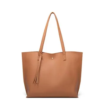 Dreubea Women's Soft Faux Leather Tote Shoulder Bag - Big Capacity with Tassel Decoration