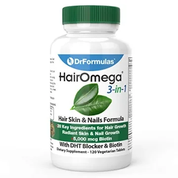 Show moreDiscover the transformational power of beautiful hair, radiant skin, and strong nails with DrFormulas HairOmega 3-in-1 Hair Growth Vitamins. This meticulously formulated supplement harnesses the science of hair care to provide you with an unparalleled experience in hair rejuvenation. Containing an exceptional DHT Blocker alongside a potent 5000mcg of biotin, HairOmega specifically caters to anyone facing hair thinning, enabling you to reclaim your confidence and achieve the gorgeous, nourished look you’ve always desired. Bid farewell to lackluster locks as you step into the world of hair vitality and overall wellness!