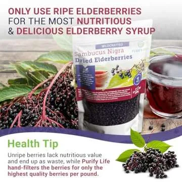 Show more Discover the delightful world of Wildcrafted Dried Elderberries that brings the essence of nature right to your kitchen! These elderberries are naturally grown and processed to retain the potent health benefits synonymous with the sambucus plant. Enjoy these GMO-free and synthetic ingredient-free berries that promise unparalleled quality and taste. Bursting with a fruity aroma, these elderberries evoke a sense of home and warmth as you prepare your favorite recipes.
