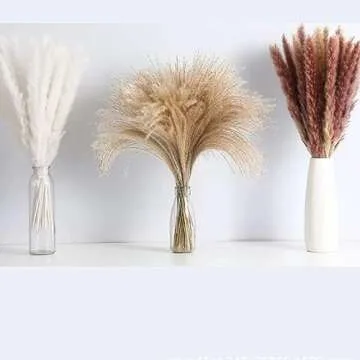 Show more Transform your home into a serene oasis with our exquisite dried pampas grass bouquet set, which features a stunning assortment of 60 pieces of natural dried pampas grass and fluffy bunny tails flowers. Each carefully curated piece brings a touch of elegance and charm to your living space, making it an ideal choice for anyone looking to infuse their decor with a bohemian flair. Our pampas grass is not only visually appealing but also requires minimal maintenance, as these dried beauties do not need watering, allowing you to enjoy their beauty hassle-free.