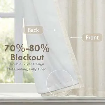 DriftAway Double Layer Linen Blackout Tie Up Curtains Thermal Insulated Fully Lined Balloon Roman Shade Bathroom Window Adjustable Rod Pocket for Small Window 25 Inch by 47 Inch Light Linen