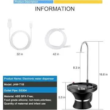Show more Introducing the Drinking Water Dispenser Pump, an innovative and convenient solution for dispensing water from your 2-5 gallon water jugs. Designed with quality and functionality in mind, this automatic electric dispenser is perfect for anyone requiring easy access to fresh water, especially those facing mobility challenges or busy lifestyles. Made from high-quality, durable materials, this water pump is BPA-free and kid-friendly, ensuring safety for all users. Perfect for home or on-the-go, the device is quick to set up and requires no complicated installations—just place it on top of your water bottle, and it's ready to go!