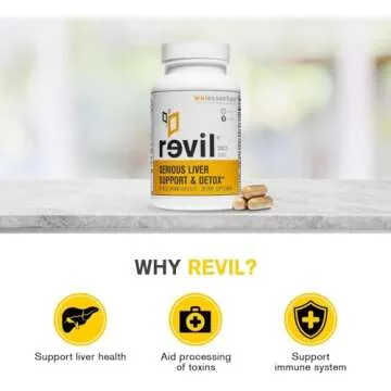 Show more Discover the remarkable benefits of Revil, a premier liver support supplement designed to enhance your liver health with a carefully crafted blend of nature's finest ingredients. This extraordinary product harnesses the power of Organic Milk Thistle, Artichoke Leaf, and Burdock Root, alongside potent herbs like Schisandra and Phyllanthus Amarus, working synergistically to support your liver function and detoxification processes. Each of the 90 vegetarian capsules contains antioxidants such as Resveratrol and Grape Seed Extract to combat oxidative stress, a vital aspect of maintaining liver wellness.