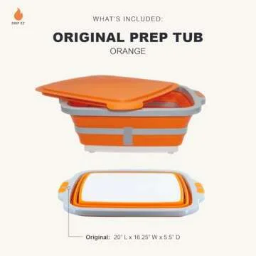 Drip EZ Collapsible BBQ Prep Tub - For Meal Prep, Marinating, Food Storage - Includes Cutting Board & Lid - (1) OG - Orange