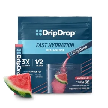 Show more Introducing DripDrop Hydration Powder, the ultimate solution for fast and effective hydration that is rooted in science-driven innovation. Perfect for athletes and outdoor enthusiasts alike, this electrolyte drink mix is designed to tackle dehydration swiftly and efficiently. With its quick-dissolving formula, DripDrop ensures you stay replenished on hot summer days or during demanding workouts. Packaged in convenient single-serve packets, just pour one into 8 oz of water, stir, and you’re ready to experience a burst of hydration! The delightful watermelon flavor offers a refreshing taste that transforms hydration into a joyful experience.