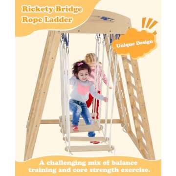 Introducing the **Dripex 8-in-1 Larger Indoor Jungle Gym**, an exciting playground designed to engage and entertain children while developing essential gross motor skills in a safe environment. Measuring 58 inches long and 56 inches tall, this indoor jungle gym is equipped with a variety of play features, including a unique 2-in-1 Rickety Bridge and Swing Sets, Climbing Ladders, Climbing Nets, Monkey Rings, and Monkey Bars. Ideal for kids aged 2 to 8, this spacious playground promises endless fun and exploration,...