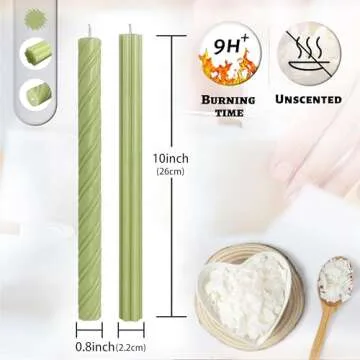 Dripless Unscented Taper Candles 10 Inch Long Burn Grass Green Spiral Candles for Home Decoration