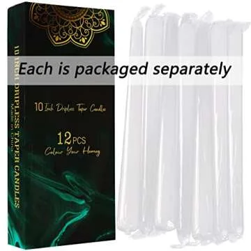 Dripless Taper Candles - Unscented White Candles Bulk - Candle Sticks Long Burning 7.5-8 Hours - for Candlesticks, Dinner Table, Vigil, Advent, Christmas, Thanksgiving, Kwanzaa - 12 Pack,10 Inch Tall