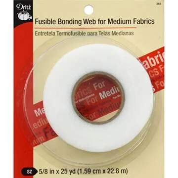 Show moreTransform your sewing projects with the Dritz 262 Fusible Bonding Web, a must-have for anyone who enjoys creating garments, home decor, and more. This high-quality bonding web is specifically designed for medium weight fabrics, ensuring you achieve a secure and lasting bond effortlessly. Measuring 5/8-inch x 25-yards, this generous length is perfect for all your crafting needs, providing endless possibilities from hems and trims to intricate belts. The versatile washability ensures that your finished projects remain pristine, whether you choose to wash or dry clean them.
