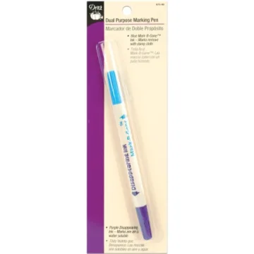 Show moreIntroducing the Dritz Dual Purpose Disappearing Ink & Mark-B-Gone Marking Pen, your ultimate sewing companion that combines innovation with functionality. This versatile tool is designed specifically for crafters who demand precision and reliability in their fabric marking. Featuring a Blue Mark-B-Gone Pen on one end, ideal for long-lasting marks, and a Purple Disappearing Ink Pen on the opposite side, which vanishes with air and water, this pen caters to all your creative needs. Whether you are marking patterns for sewing, quilting, or embroidery, you'll appreciate how easy it is to achieve clean lines that enhance your crafting experience.