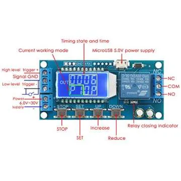 DROK Timer Relay, Time Delay Relay DC 5V 12V 24V Delay Controller Board Delay-off Cycle Timer 0.01s-9999mins Trigger Delay Switching Relay Module with LCD Display Support Micro USB 5V Power Supply