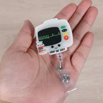 Drop The Beat Badge Reel, Funny ER ICU Nurse Badge Reel, Retractable RN Nurse Badge Holder, Cardiac Badge Reel, Nursing Student ID Badge Clip, CNA MA Medical Worker Nurse Accessories for Work