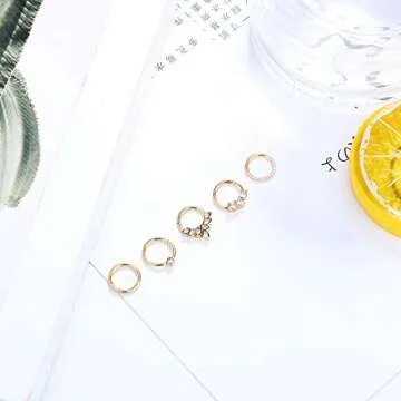 Drperfect Daith Earrings 16G Stainless Steel Cartilage Helix Tragus Nose Hoop Piercing Jewelry 8MM Gold Plated CZ Hinged Septum Clicker Rings
