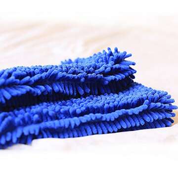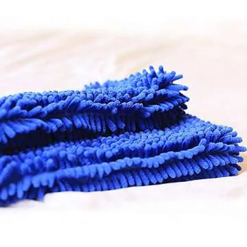Dry Ultra Absorbent Microfiber Chenille Shammy Dog Towel with Hand Pockets Blue One Size 31 x 13 inch