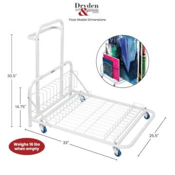 Dryden Art Canvas Storage Rack & Frame Keeper, Mobile Cart, Large Floor Model with Casters and Handle - 33" x 25.5" x 30.5" - White