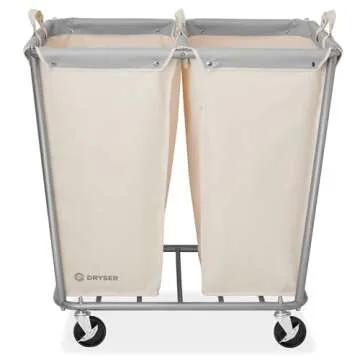 Show more Introducing the Dryser Divided Commercial Heavy-Duty Rolling Laundry Hamper, the ultimate solution for efficient laundry management! Built with a robust heavy-duty steel frame, this cart is engineered to handle the rigors of both commercial and residential use, making it a versatile addition to hotels, gyms, and families alike. Designed specifically for maximum durability, it can hold up to an impressive 150 lbs. of linens, clothes, and other laundry essentials, ensuring you can tackle even the largest loads with ease. The thoughtful design with smooth-rolling caster wheels enables effortless maneuverability across any surface, making laundry day less of a chore.