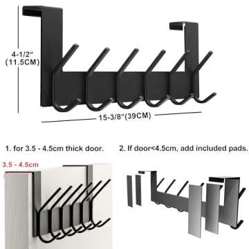 Dseap Over The Door Hook Hanger - 6 Hooks Over Door Coat Rack for Hanging Clothes Hat Towel, Brushed Nickel