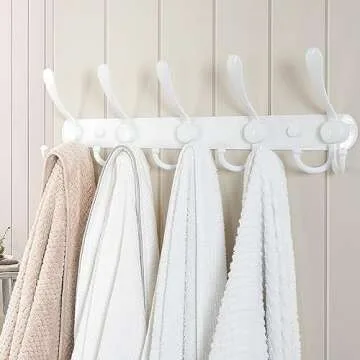Show more Experience the perfect blend of functionality and style with our innovative wall-mounted coat rack. Crafted from high-quality stainless steel and featuring an aluminum alloy hook design, this coat rack is built to last. Measuring 16-1/4 inches in length, 5-1/4 inches in width, and 2 inches in height, its sleek white finish ensures it complements any decor in your home.