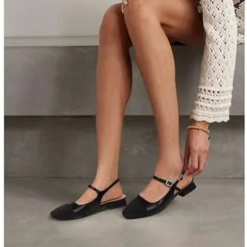 Dsevht Black Slingback Flats for Women Closed Square Toe Mary Jane Ballet Flats Casual Fashion Dress Shoes for Women