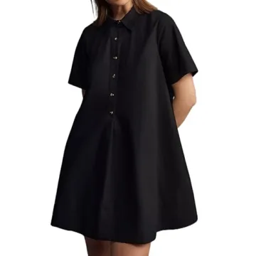 Show more Step into summer with our casual Short-Sleeve Swing Tunic Mini Dress, a fantastic piece designed for women who appreciate comfort and style. Crafted from a soft and skin-friendly fabric, this lightweight and breathable attire ensures you stay cool and chic during the warmest months. The tunic features a button-down closure, a classic solid color palette, and a basic V-neck collar that accentuates the neckline without compromising comfort.