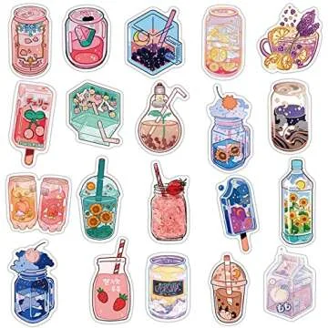 Dslalaly Bubble Tea Stickers,Flavor Drink Bottle Stickers | 50 Pcs | Summer Vinyl Waterproof Yogurt Juice Beer Bottle Stickers for Laptop,Water Bottles,Computer,Phone,Kids Teens Stickers