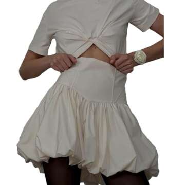 DSORVICD Women Y2k Ruffle Bubble Skirt Cute High Waist Mini Skirt Balloon Short Skirt Layered Pleated A Line Skirt Streetwear