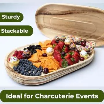Show moreIntroducing the Dtocs Disposable Charcuterie Boards, a game-changer for anyone who loves hosting gatherings! Made from naturally shed palm leaves, these large, 22"x12" oval platters are not only visually appealing with their elegant wooden tray appearance but also serve as a sustainable and eco-friendly alternative to traditional disposable dinnerware. Your guests will be amazed at how sturdy and well-crafted these boards are, accommodating appetizers for 6-8 people effortlessly!