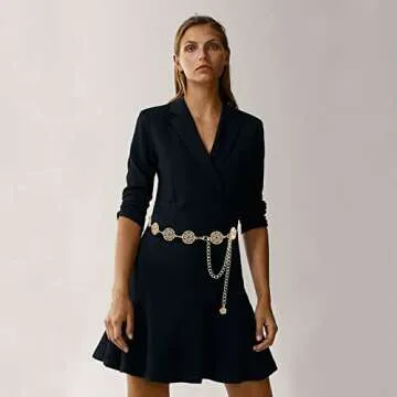 DTWAWA Hollow Round Decor Chain Belts for Women, Metal Waist Chain Plus Size for Her Dresses(Gold,41.3in)